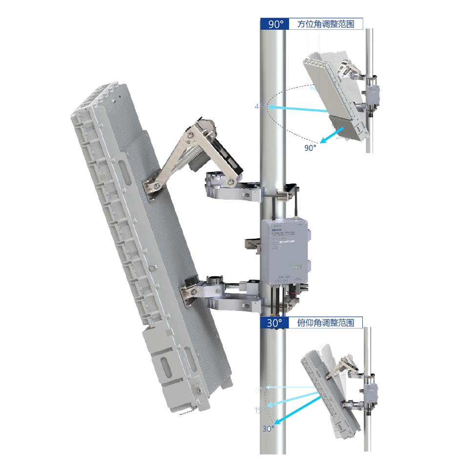 智能天饋系統主要由機械臂,遠程控制單元和智能中心控制單元CCU組成,智能CCU可遠程調節天線傾角及方位角,并通過遠程控制單元監測和傳輸天線實時的工況數據,可通過現場調試配置,或者遠程組網登錄智能運維管理平臺查看數據、告警、遠程操作等,從而保障天饋系統安全穩定運行。